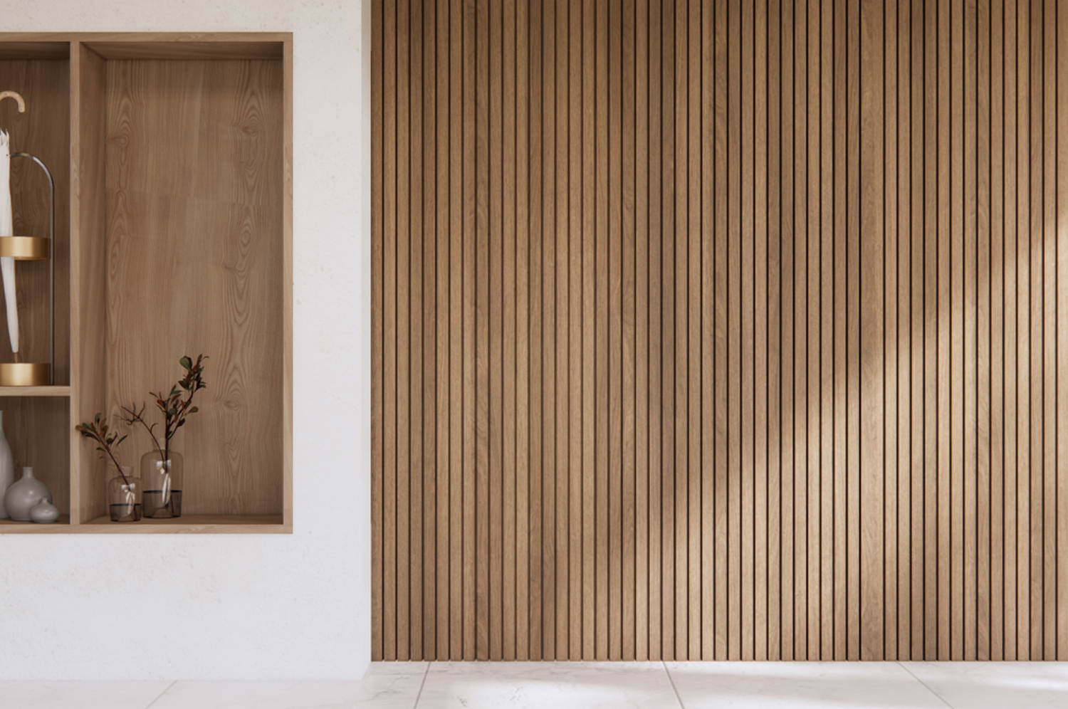 - Japandi: Japandi favours calm, natural, and understated spaces. The organic texture and clean lines of fluted panels fit effortlessly into this style, adding warmth without visual noise.